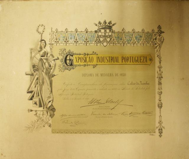 Diploma de medalha de ouro, conferida à Companhia de Faianças das Caldas da Rainha, pelo júri da Exposição Industrial Portuguesa, realizada no ano de 1888.