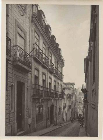 Prédio da Rua da Fé nº 33, em Lisboa, onde nasceu Rafael Bordalo Pinheiro, pertencente a Henrique Jeronymo de Carvalho Prostes, o avô materno do artista (ver. MRBP.ESP.DOC.0130, p. 4). No verso carimbo do autor.