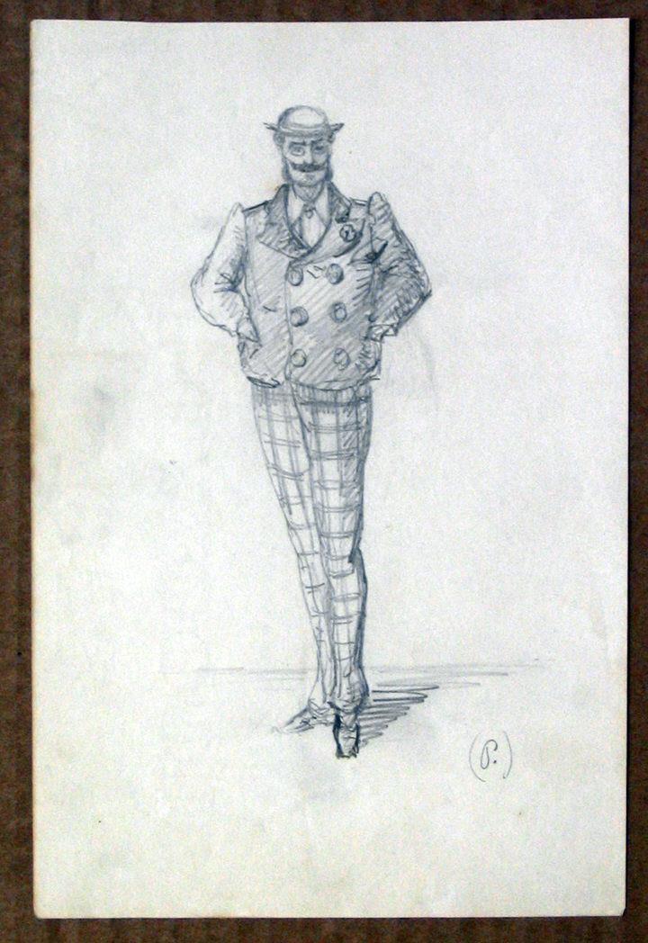 Desenho de figura masculina (Ramalho Ortigão?), corpo inteiro, de frente.